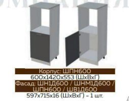 Глубина нижних шкафов без учета столешницы:490 мм, с учетом столешницы 600 мм