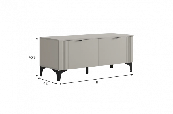 Тумба оснащена двумя распашными дверцами, которые открывают доступ к просторным внутренним полкам, идеально подходящим для хранения посуды, бытовой техники, аксессуаров или других предметов. Металлические ручки придают изделию современный вид и удобство в использовании.