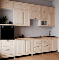 Модульная кухня Престиж Сандал светлый (Миф) – товар доступен к покупке в интернет-магазине dommebeli-v-mahachkale.ru. Цена – 29 685 руб. без учета доставки. Стоимость дополнительных услуг и сроки получения мебели уточняйте у менеджера. Возможен безналичный расчет, оплата по карте на сайте.